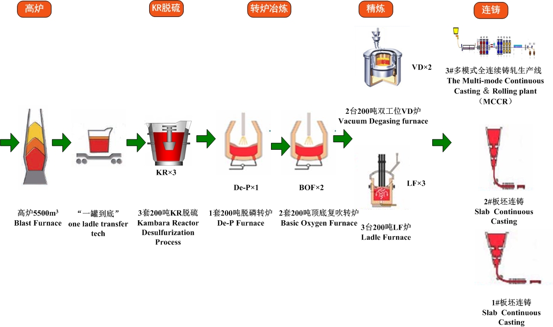 金年会京唐具有世界先进中厚板产线,引进国内第一台400mm厚板坯连铸机,采用奥钢联技术,配备全程带液芯压下、结晶器液面自动控制、二冷3D喷淋和凝固末端大压下功能,板坯表面和内部质量优异。